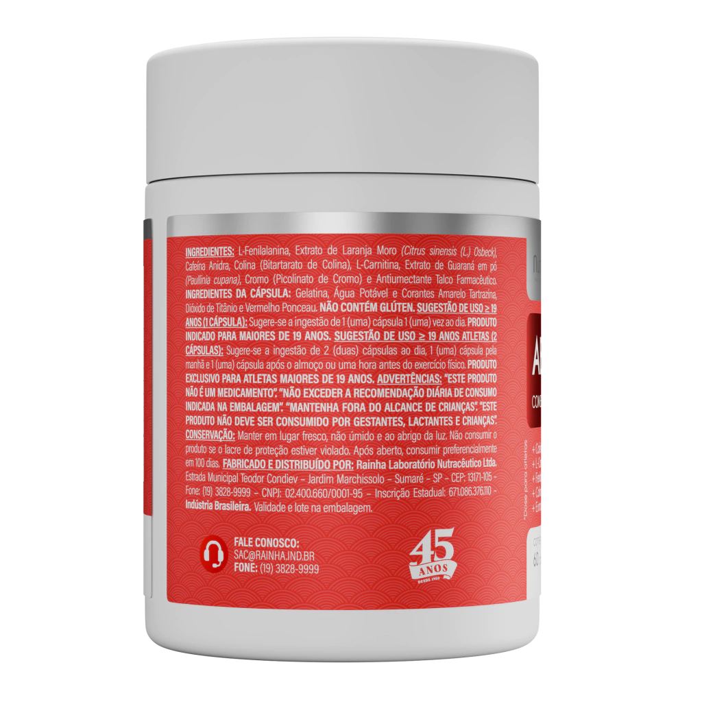 INGREDIENTES: L-Fenilalanina, Extrato de Laranja Moro [Citrus sinensis (L.) Osbeck], Cafeína Anidra, Colina (Bitartarato de Colina), L- Carnitina, Extrato de Guaraná em pó (Paullinia cupana), Cromo (Picolinato de Cromo) e Antiumectante Talco Farmacêutico. INGREDIENTES DA CÁPSULA: Gelatina, Água Potável e Corante. NÃO CONTÉM GLÚTEN.